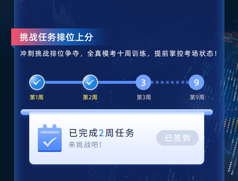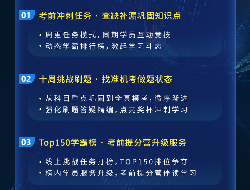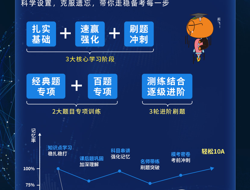 适合需要系统学习、打牢基础的学员。包含前导+基础+强化+冲刺4个学习阶段,经典题+百题2大专项训练,考前提供1套密卷和2套模考。
