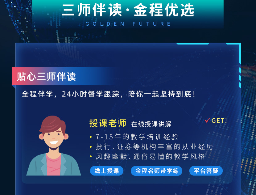 CFA智能通关计划课程将学习素材与人工智能完美结合,为学员通过CFA考试保驾护航;金程研究院呕心沥血,倾情打造;小班制管理,班主任督学,助教在线答疑,助力学员通过CFA。