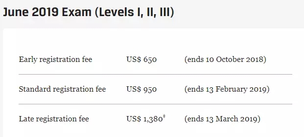 金程教育温馨提示:2019年6月CFA一二三级报名第一阶段已于美东时间8月16日9:00开始,第一阶段截止到2018年10月10日。