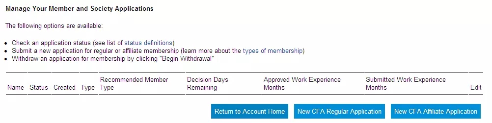 3.选择 "New CFA Regular Application":