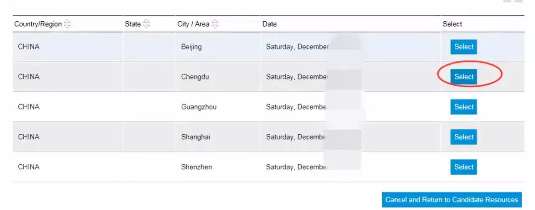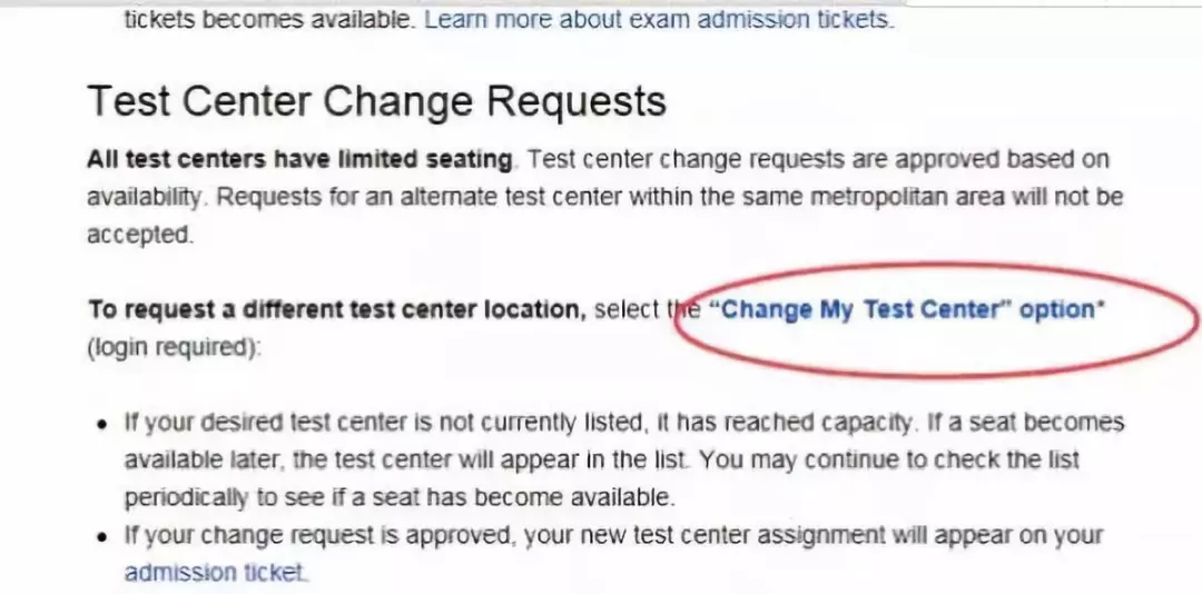 2. 点击:Change My Test Center,更改我的考试中心选项(候选人需登录),选择考试时间和城市,点击GO。