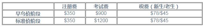 如果选择在早鸟阶段报名考试的话,需要支付的费用包括注册费、早鸟考试费以及新生税费,费用合计1328美元左右;