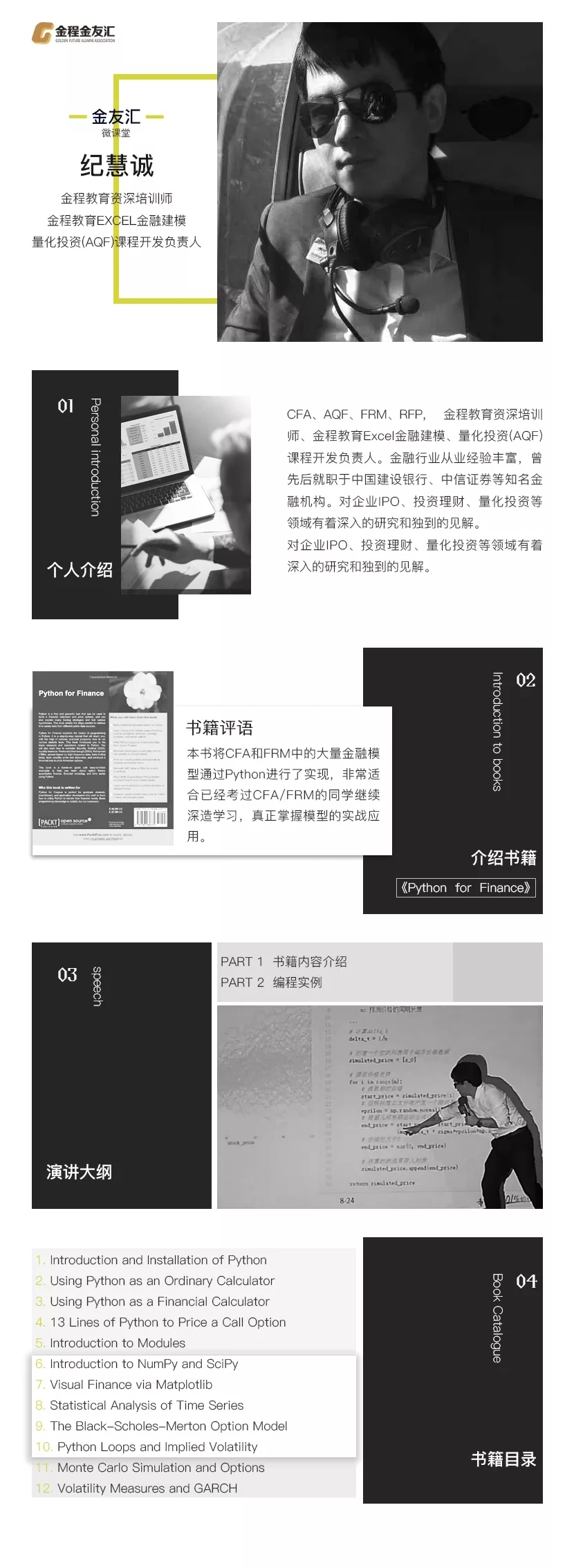 《Python for Finance》将CFA和FRM中的大量金融模型通过Python进行了实现,结合Python的各个模块以及金融领域中的期权价格、金融图形绘制、时间序列、期权定价模型、期权定价等内容,深度揭示了Python在金融行业中的应用技巧。》》》想考CFA或者FRM证书的点我咨询