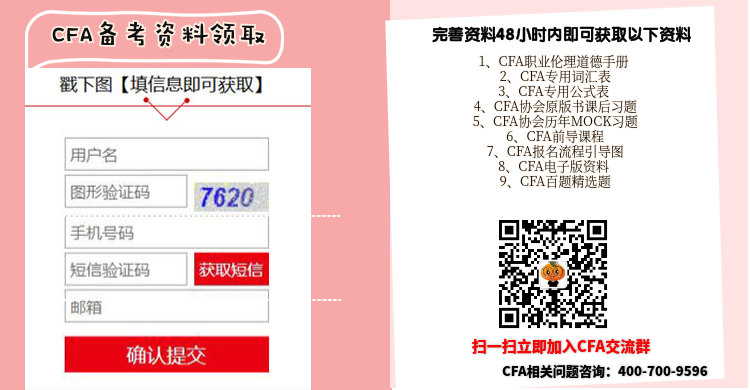 CFA全球交流QQ群:908685645。最新CFA资料&资讯随时分享,与众多CFA备考或持证人交流考试经验。