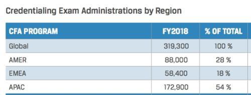 今年6月,CFA Institute数据显示,超过25万名考生已登记参加6月举行的CFA一级、二级和三级考试,较去年同期增加11%;全球95个市场的应试中心亦由286个大增逾两成至348个;而中国所在的亚太区继续是全球最多考生的地区。