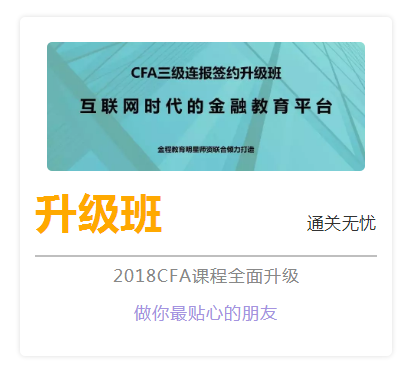 “为迎接CFA改革给考生带来的冲击,金程教育特推出“CFA三级连报签约升级班”,完善互联网时代的金融教育平台。”