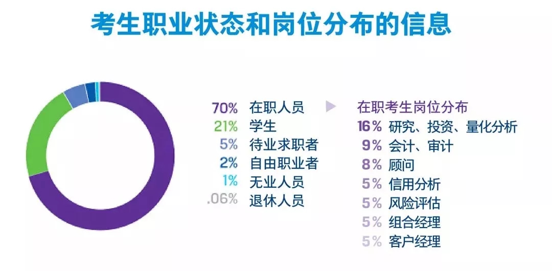 根据考生调查,全球有近7万人参加了2017年12月的CFA一级考试;在2018年6月的CFA考试中,参加三个级别考试的考生共计则有近18万,2018年12月一级考试总考生数量高达七万余名。