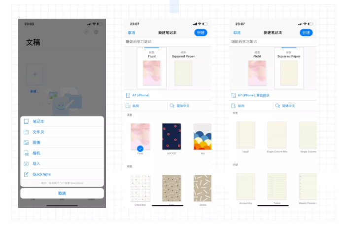 我个人是十分喜欢goodnotes新建笔记本的功能的。它可以选择笔记本的封面和纸张,而且软件内自带多种封面图案和纸张样式。